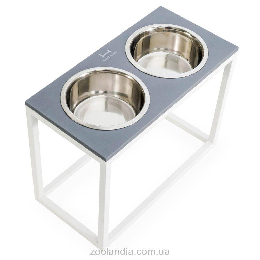 Harley & Cho (Харли энд Чо) Dinner Gray Stone + White миски на подставке для собак
