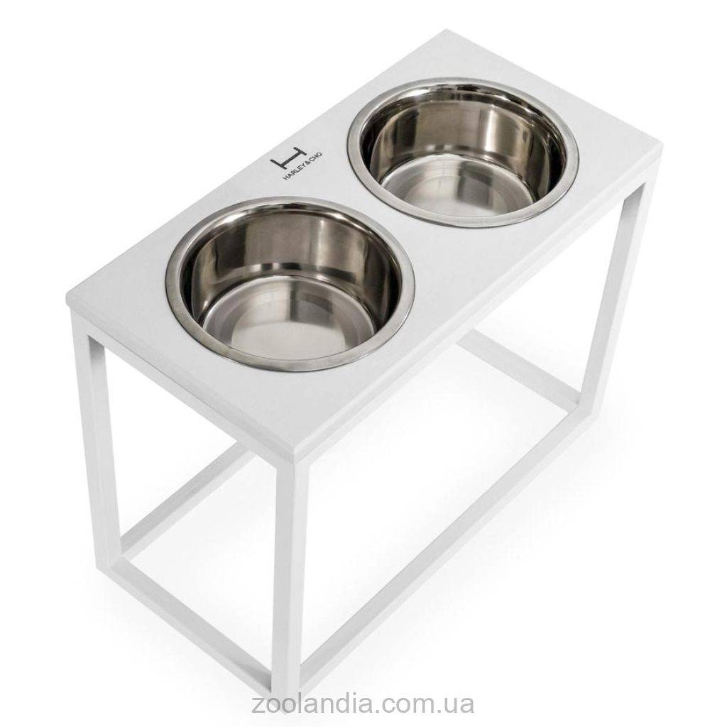 Harley & Cho (Харли энд Чо) Dinner White wood + White миски на подставке для собак