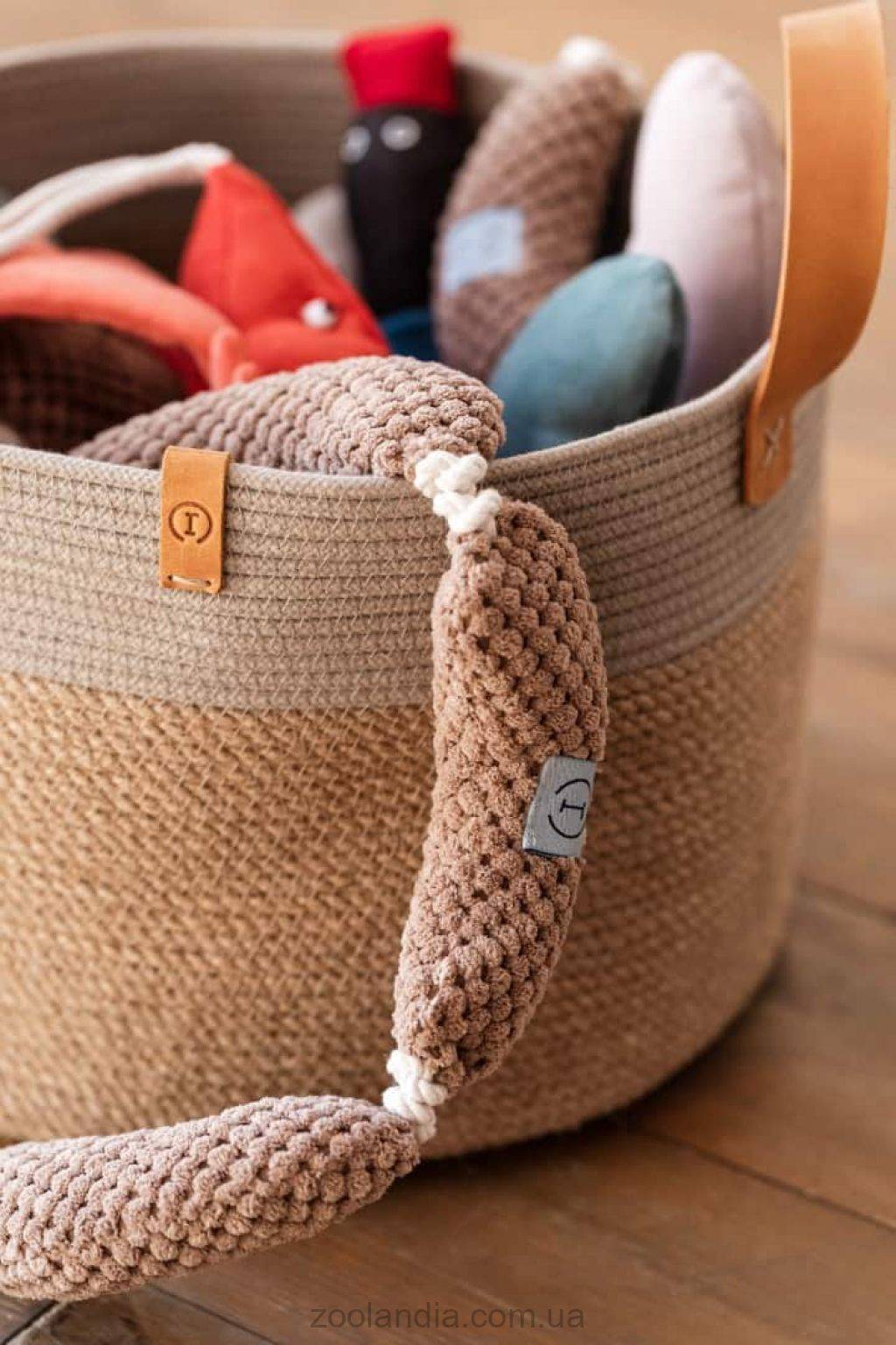 Изготовленная из натурального джута и хлопковой нити, наша корзинка станет экологически безопасным решением для хранения игрушек ваших котиков и собачек. Крепкие кожаные ручки, расположенные по обе стороны корзины, позволят удобно переносить ее по дому.