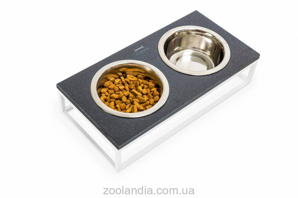 Harley & Cho (Харли энд Чо) Lunch Bar Black Stone + White Миска двойная на подставке для кошек и собак