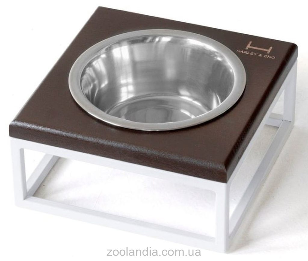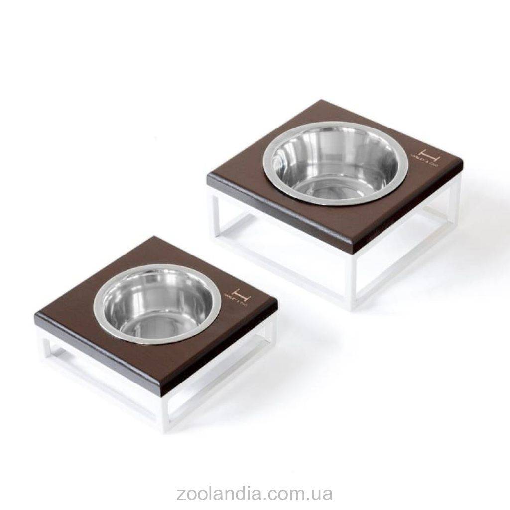 Harley & Cho (Харли энд Чо) Lunch Bar Brown wood + White одинарная миска на подставке для кошек и собак