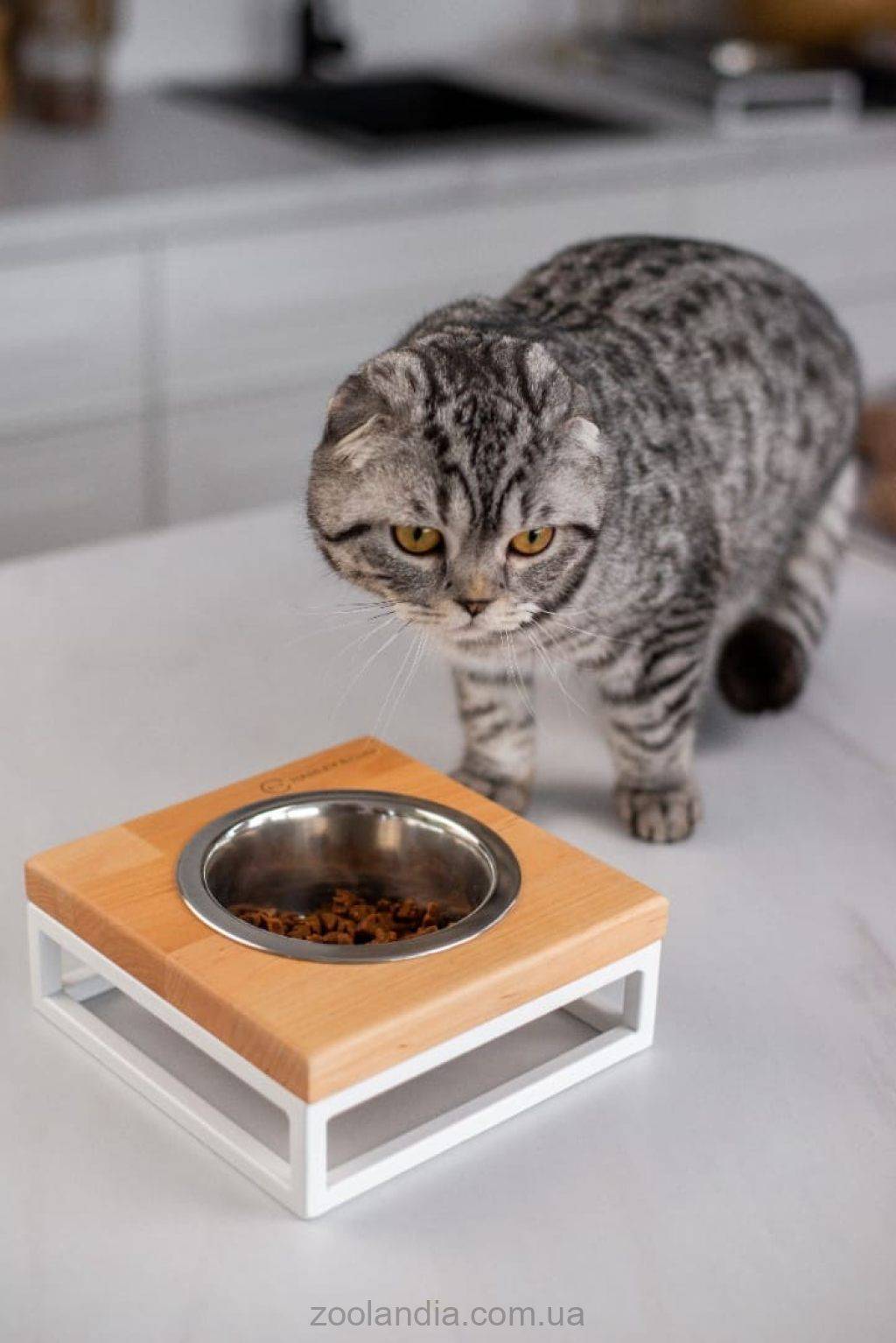 Миска для корма или воды на подставке из натурального дерева. Отличное решение для еды или питья. Подойдет для маленьких собак и котиков любых пород и гастрономических «нравов».