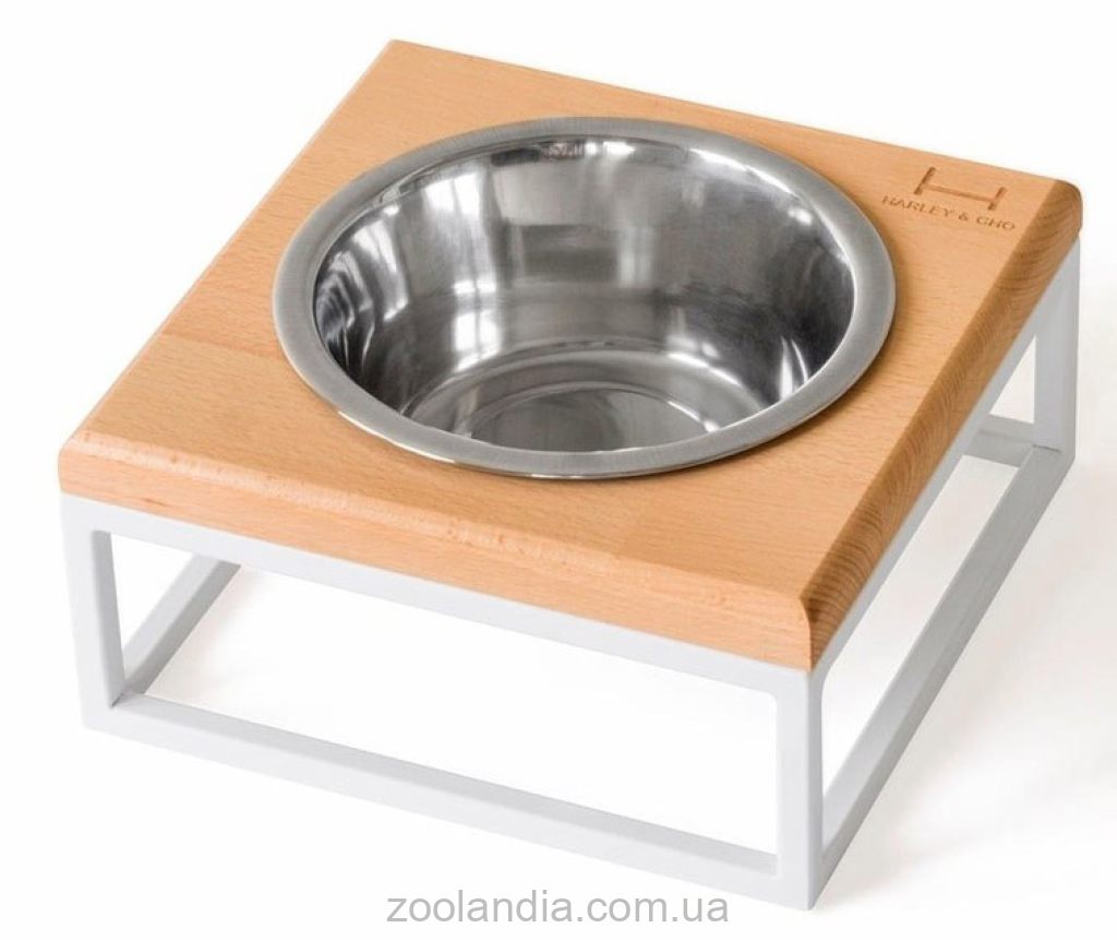 Harley & Cho (Харли энд Чо) Lunch Bar Natural wood + White одинарная миска на подставке для кошек и собак