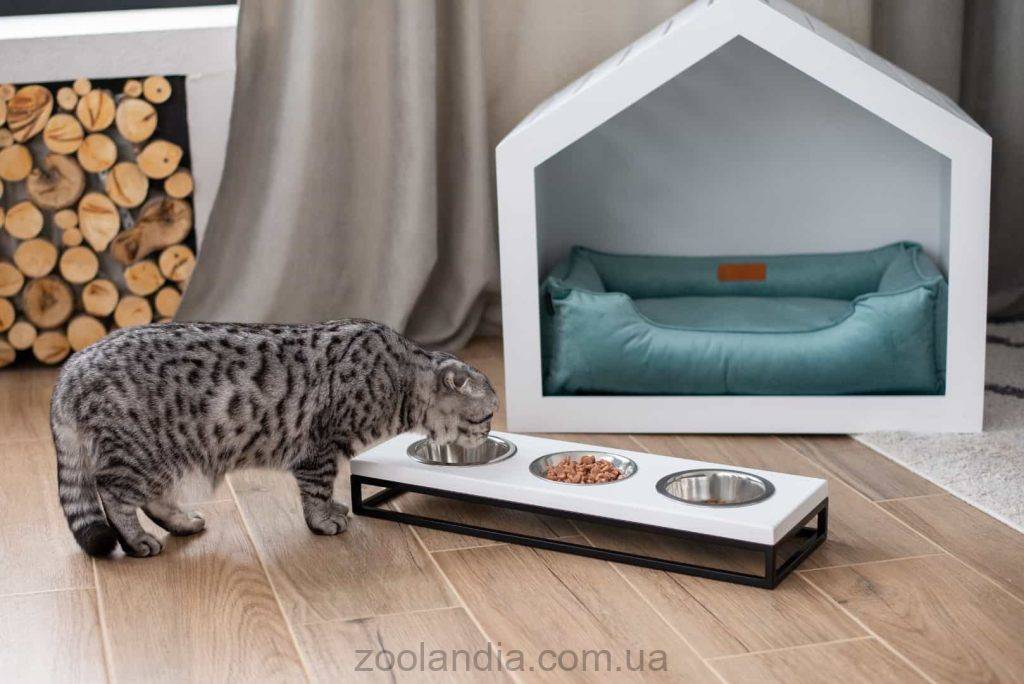 У питомца должно быть две миски для корма: одна для еды, вторая для воды.В нашей конструкции мы предлагаем сразу три миски. Все емкости предусмотрены для сухого и мокрого кормов и воды. Этот вариант кормушки отлично подойдет для “многодетных семей”.Миски на подставках для собак и котов отлично вписываются в интерьер любого помещения, они мобильные и по-домашнему уютные!
