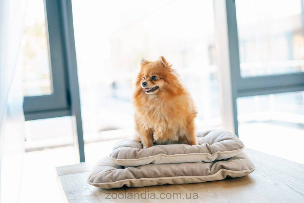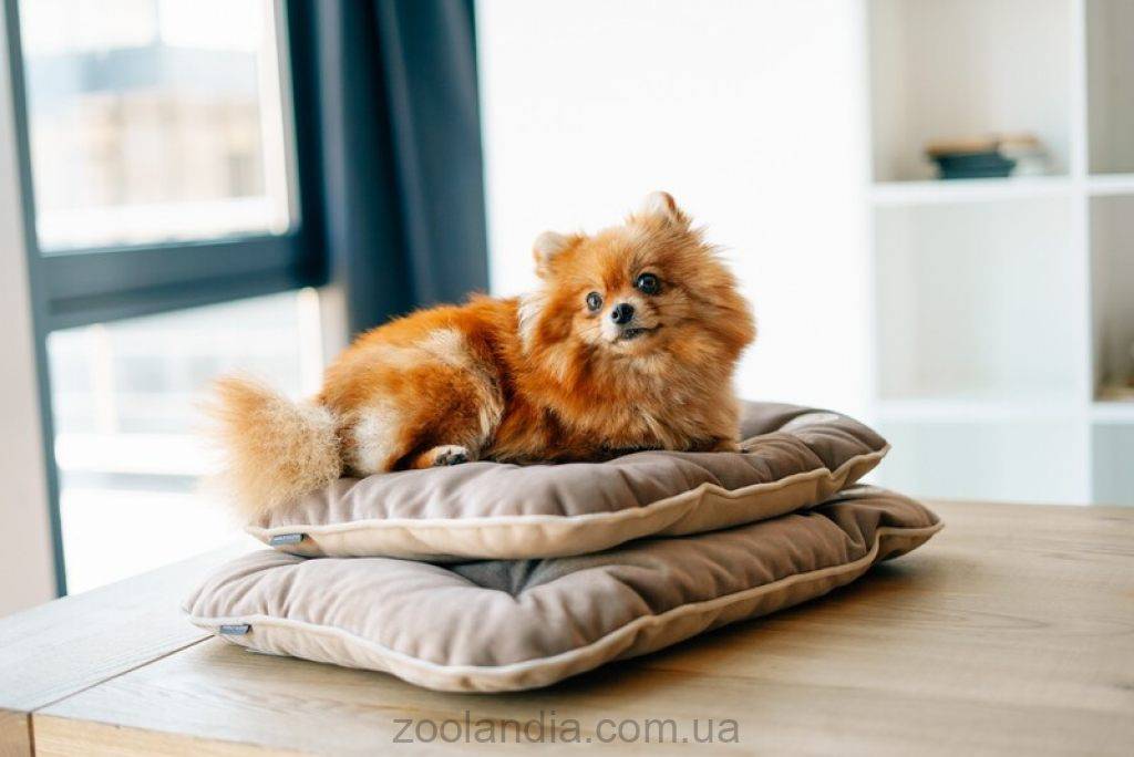 S: 58 х 40 (см), толщина - 5-6 см. Для маленьких собачек весом до 6 кг (шпицов, йоркширских терьеров, той-терьеров).