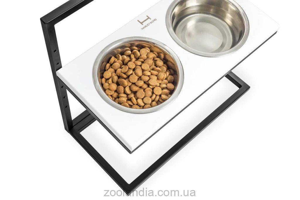 Harley & Cho (Харли энд Чо) White Lift Wood + Black миски на подставке c регулируемой высотой для собак
