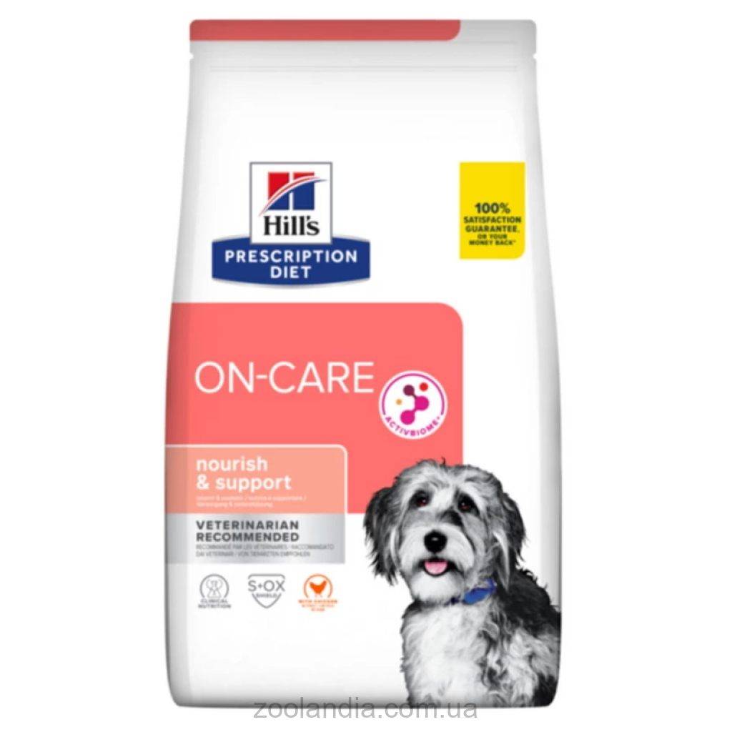 Сухой корм для собак Hills Prescription Diet On-Care, с курицей - полнорационное диетическое питание, специально разработанное диетологами и ветеринарными врачами для восстановления потребления пищи в период реабилитации. Содержит все питательные вещества, необходимые вашей собаке.