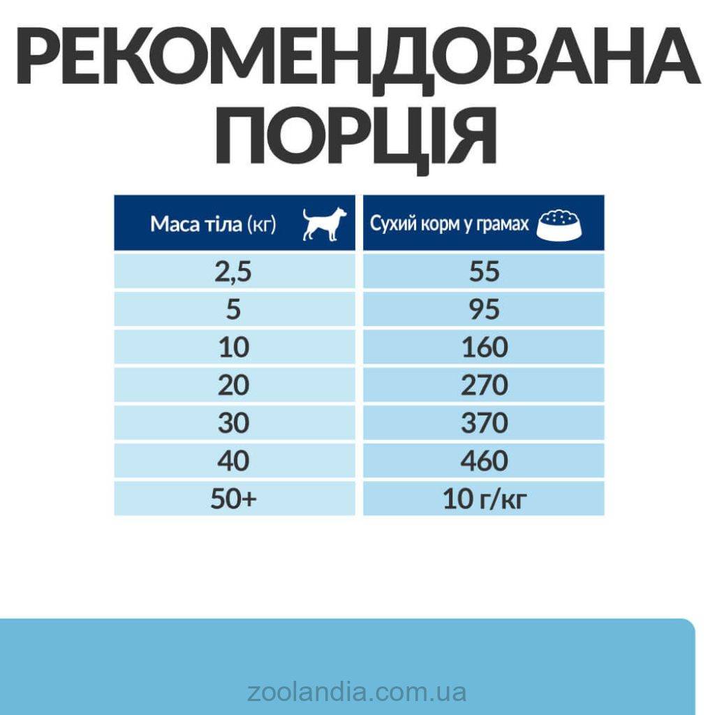 | Вес собаки — кг | Количество в день - грамм |