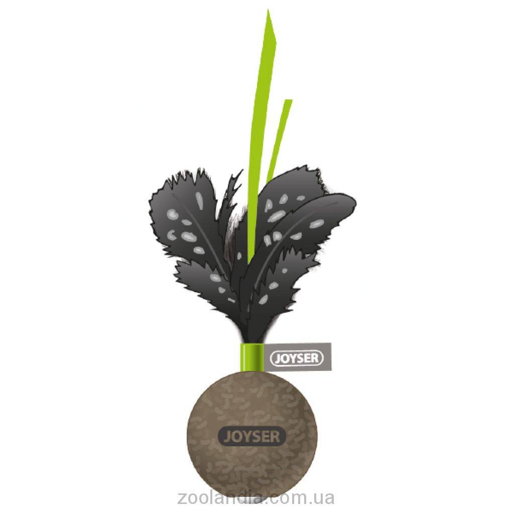 Joyser Cat Ball – игрушка-неваляшка для котов. Представляет собой мяч с натуральными перьями и зелеными полосками бумаги. Мяч изготовлен из резины с добавлением прессованной кошачьей мяты, в середине его – металлический шарик для создания эффекта качания.