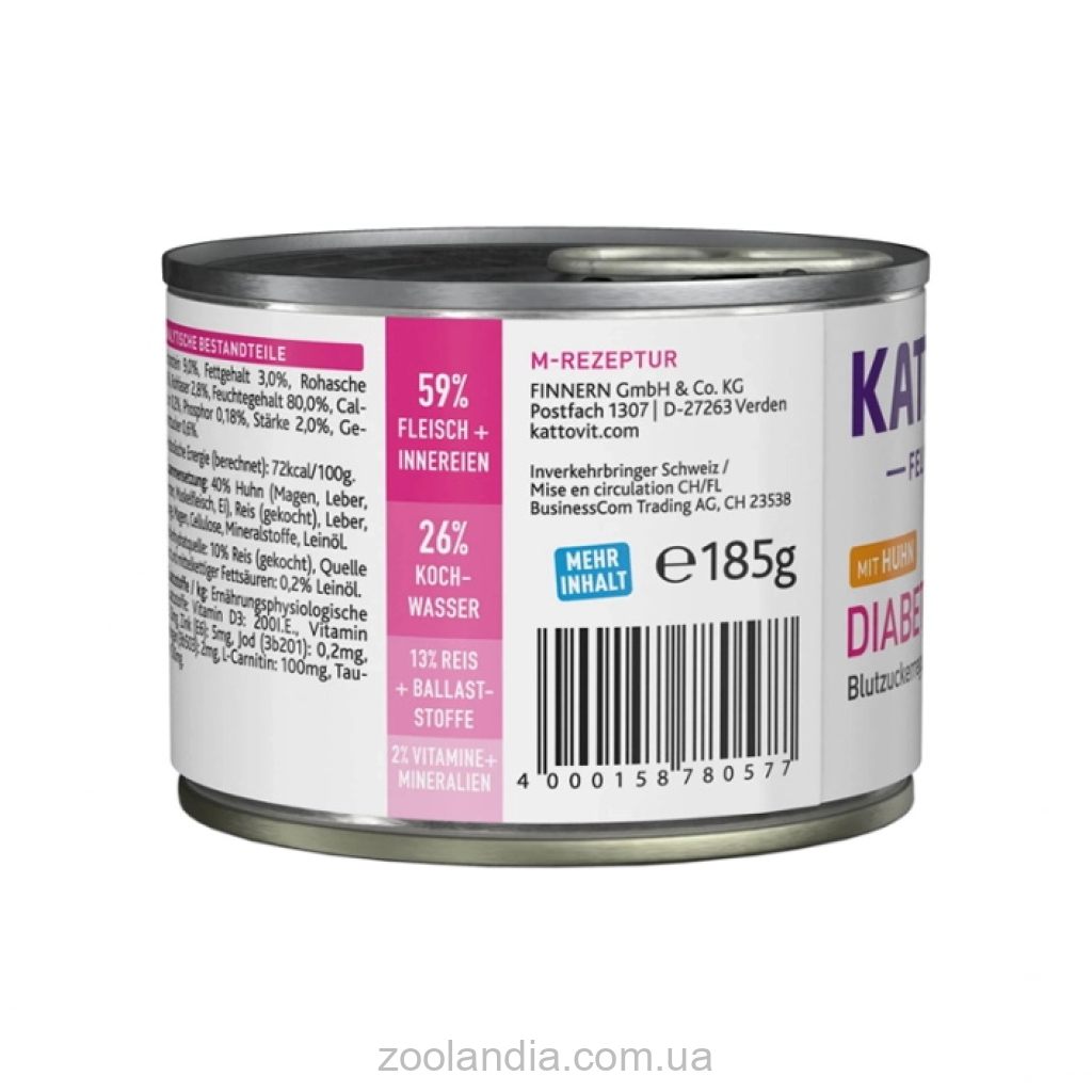 Лечебный корм для котов Kattovit Veterinary Diabetes рекомендуется использовать по назначению и под контролем ветеринарного врача с регулярным индивидуальным контролем уровня сахара в крови и массы тела питомца.
