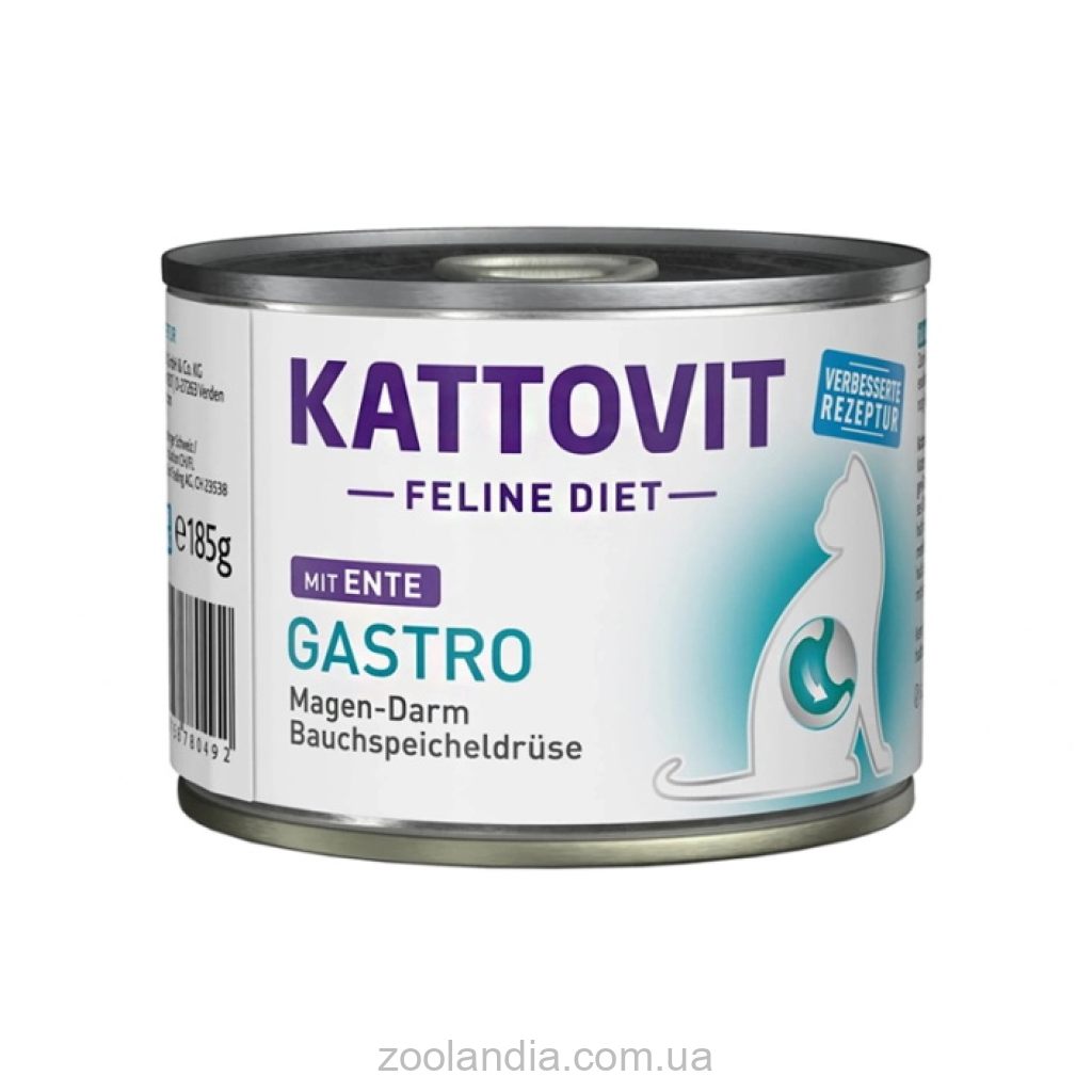 Лечебный корм для котов Kattovit Veterinary Gastro Утка рекомендуется использовать по назначению и под контролем ветеринарного врача.