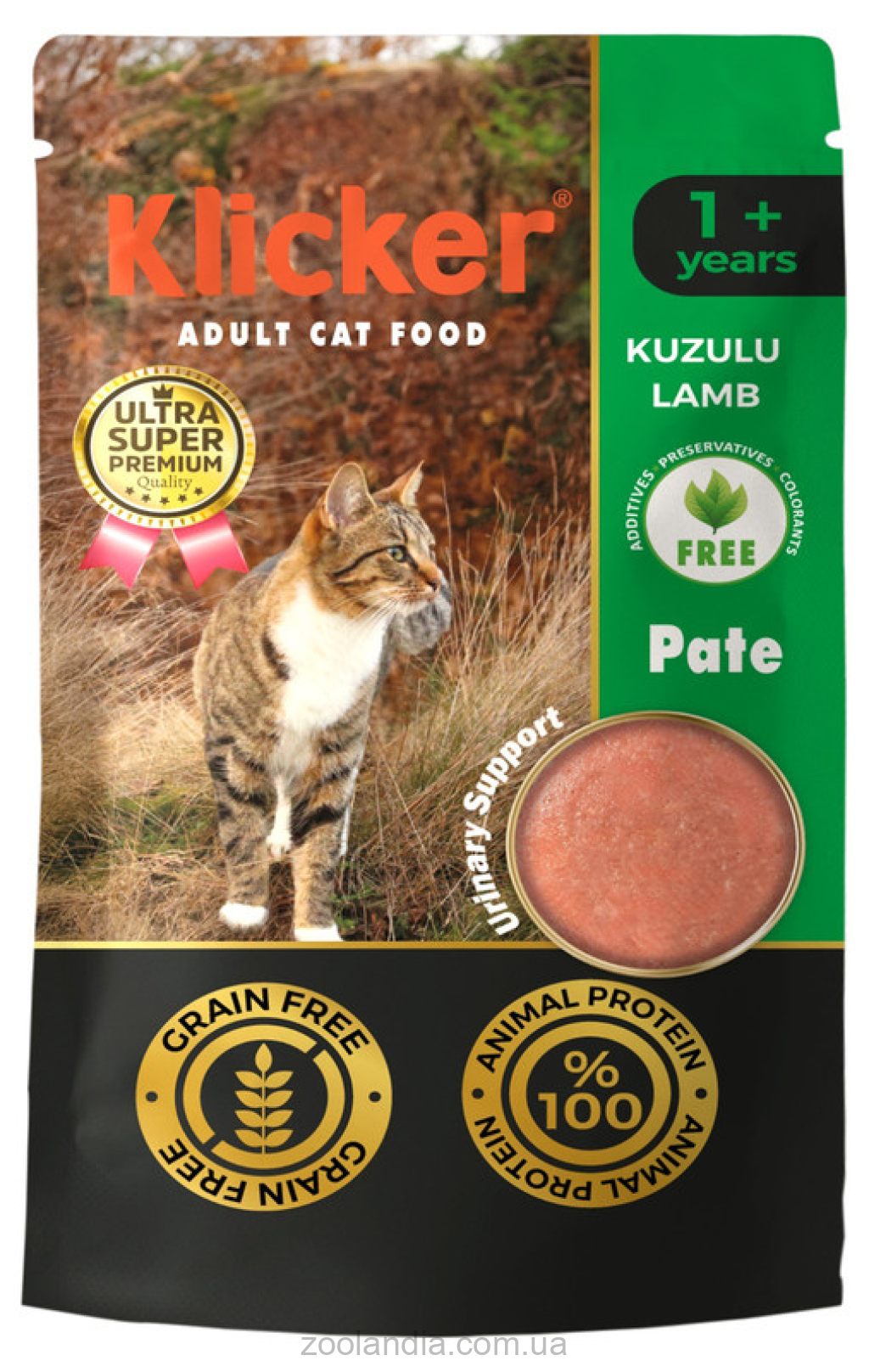 Подарите своему коту настоящее наслаждение и полноценное питание с влажным кормом Klicker класса холистик! Этот пауч создан с мыслью о естественных потребностях хищников, обеспечивая максимальную пользу и непревзойденный вкус.Особенности и преимущества:• 100% животного белка: Klicker полностью отвечает биологическим потребностям кошек. В составе корма вы найдете только животный белок, являющийся основой здорового рациона вашего любимца.• Высокое содержание мяса и субпродуктов (96%): Это гарантирует высокую питательную ценность и исключительную привлекательность кошек.• Без искусственных добавок: Мы заботимся о здоровье вашего любимца, поэтому корм не содержит искусственных красителей и консервантов. Только натуральный состав для природной красоты и энергии.• Сбалансированный комплекс витаминов и минералов: обогащенный таурином для поддержания зрения и сердца, витаминами А, D3, Е, а также необходимыми минералами (железо, медь, марганец, цинк, йод), Klicker обеспечивает полноценную поддержку иммунной системы и жизненных функций.• Удобный формат пауча: идеально подходит для порционного кормления, сохраняя свежесть и аромат корма. Нежный паштет обеспечивает приятную текстуру.Рекомендации по питанию:Всегда подавайте корм комнатной температуре. Обеспечьте постоянный доступ к свежей питьевой воде. После открытия храните пауч в холодильнике и используйте в течение 48 часов.