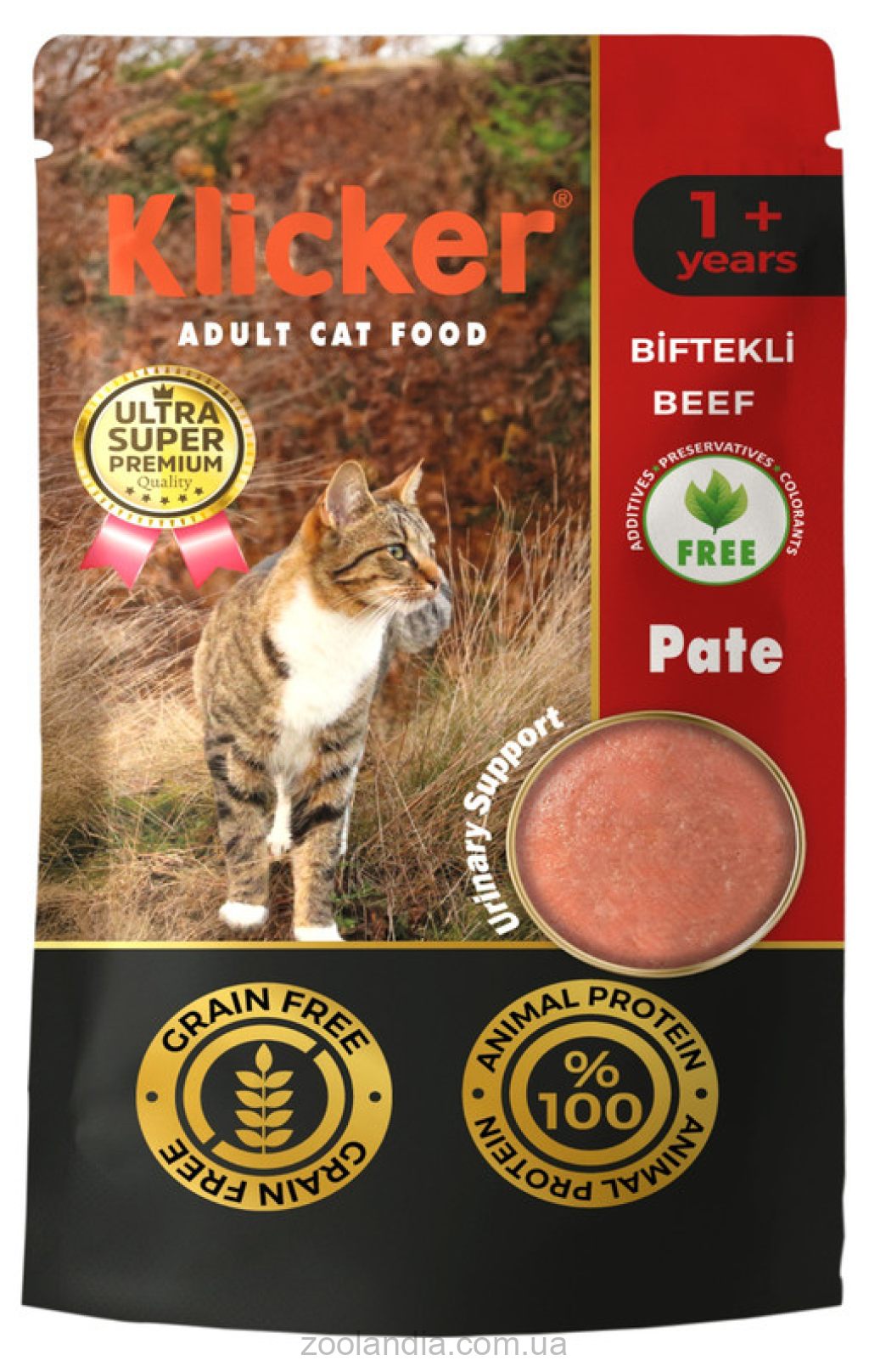 Подарите своему коту настоящее наслаждение и полноценное питание с влажным кормом Klicker класса холистик! Этот пауч создан с мыслью о естественных потребностях хищников, обеспечивая максимальную пользу и непревзойденный вкус.Особенности и преимущества:• 100% животного белка: Klicker полностью отвечает биологическим потребностям кошек. В составе корма вы найдете только животный белок, являющийся основой здорового рациона вашего любимца.• Высокое содержание мяса и субпродуктов (96%): Это гарантирует высокую питательную ценность и исключительную привлекательность кошек.• Без искусственных добавок: Мы заботимся о здоровье вашего любимца, поэтому корм не содержит искусственных красителей и консервантов. Только натуральный состав для природной красоты и энергии.• Сбалансированный комплекс витаминов и минералов: обогащенный таурином для поддержания зрения и сердца, витаминами А, D3, Е, а также необходимыми минералами (железо, медь, марганец, цинк, йод), Klicker обеспечивает полноценную поддержку иммунной системы и жизненных функций.• Удобный формат пауча: идеально подходит для порционного кормления, сохраняя свежесть и аромат корма. Нежный паштет обеспечивает приятную текстуру.Рекомендации по питанию:Всегда подавайте корм комнатной температуре. Обеспечьте постоянный доступ к свежей питьевой воде. После открытия храните пауч в холодильнике и используйте в течение 48 часов.Подарите своему коту настоящую заботу и вкус с влажным кормом Klicker Холистик – выбор, достойный вашего любимца!