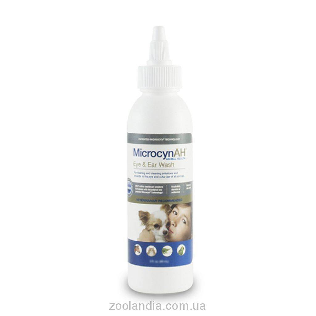 Капли для глаз и ушей Microcyn Eye&Ear Wash изготовлены на основе новейшей, запатентованной технологии Microcyn® с хлорноватистой кислотой и одобрены к применению ветеринарами. Предназначены для обработки глаз, наружного уха и слухового прохода при конъюнктивитах, блефаритах, отитах, после хирургических вмешательств в области глаз и ушей. Идеальны при лечении различного рода раздражений и зуда глаз и ушей, лечении ран в области уха без дискомфорта для животного.