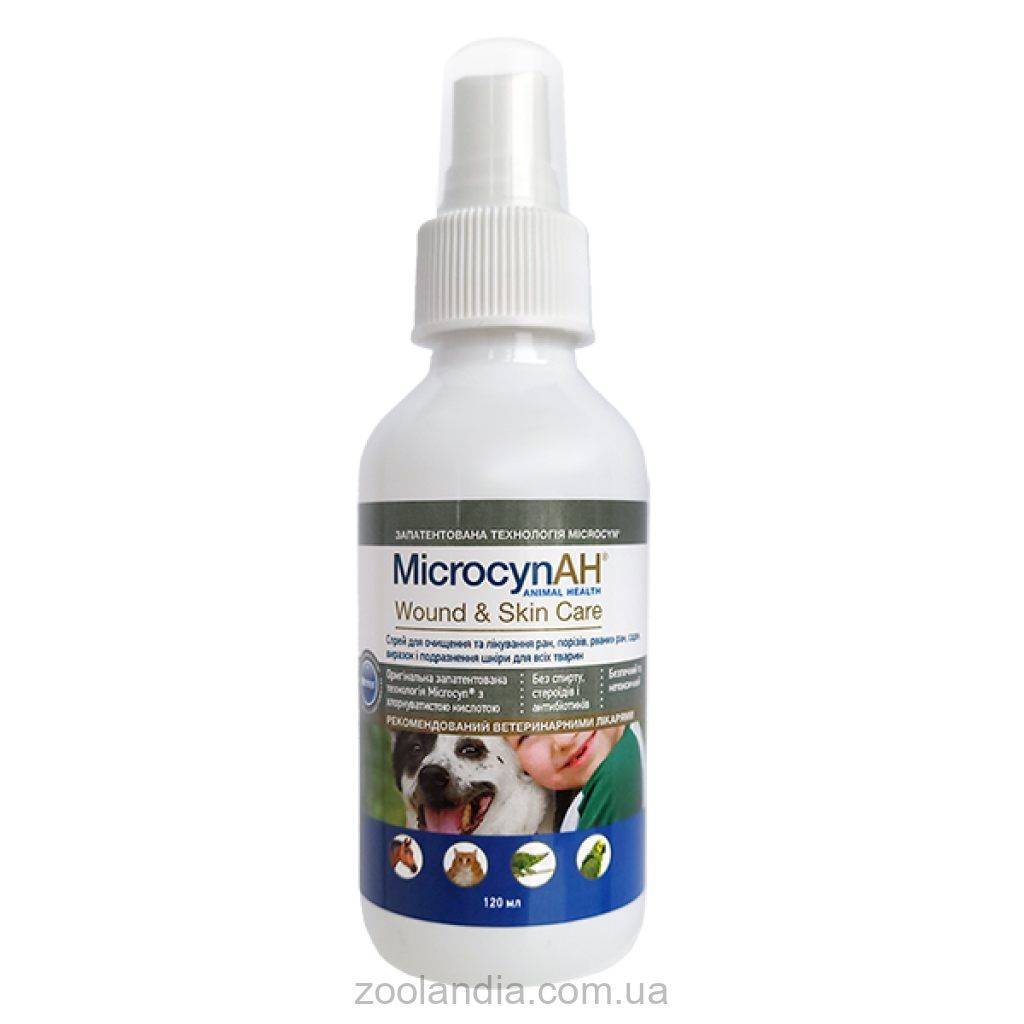 Спрей Microcyn Wound&Skin Care дозволено застосовувати для всіх видів тварин. Він безпечний для собак, котів, кроликів, декоративних птахів та інших екзотичних та свійських тварин. Мікроцин знищує 99,99% шкідливих вірусів, бактерій і грибкових організмів протягом всього 30 секунд після його нанесення. Чому варто купити спрей для обробки ран і догляду за шкірою >