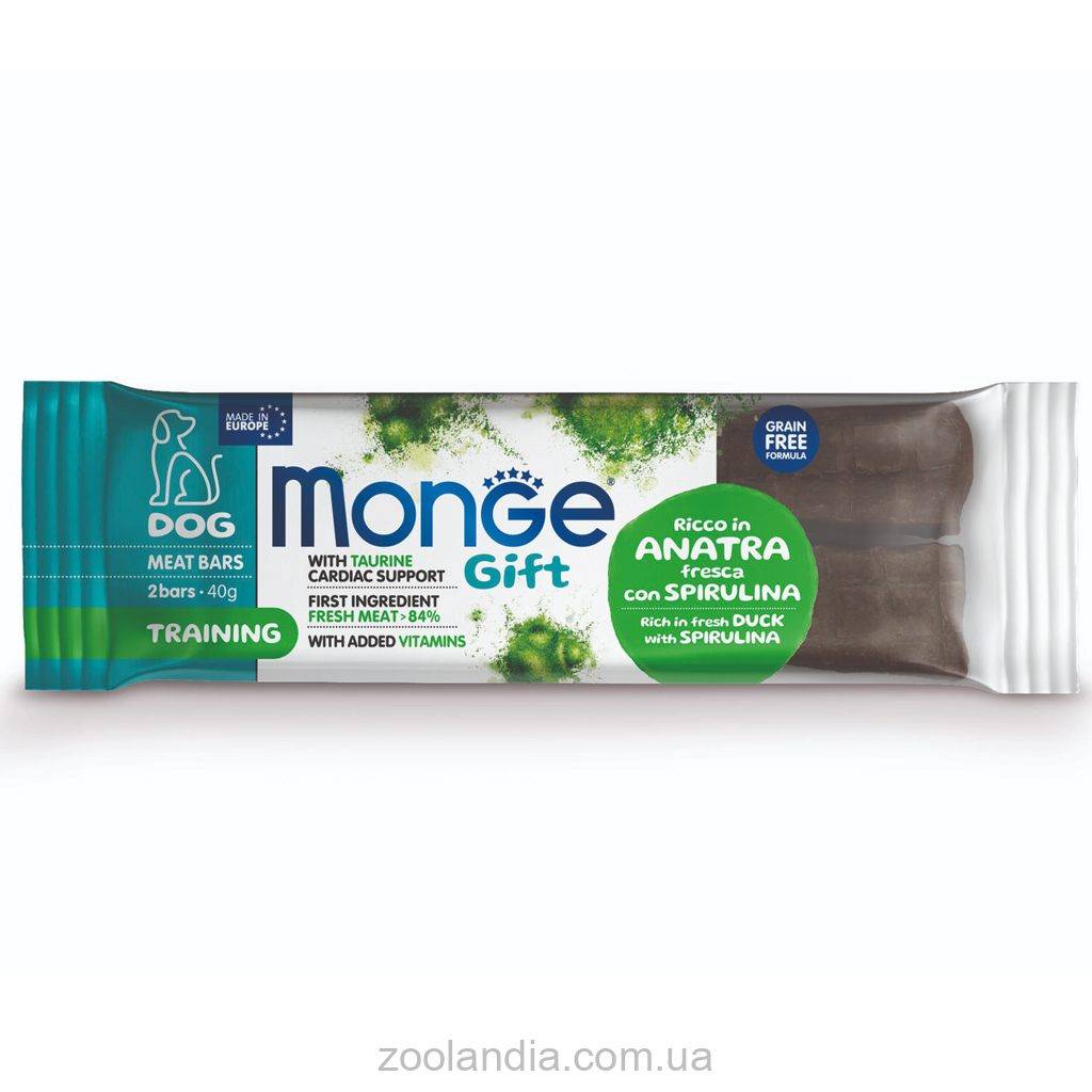 Беззерновое лакомство для собак Monge Gift Dog Training Meat Bar Duck - это идеальное дополнение к рациону взрослых собак, разработанное с целью обеспечения отличного здоровья и самочувствия вашего питомца. Этот продукт специально создан для поддержания сердечной функции благодаря содержанию таурина, а также для обеспечения ежедневной активности с помощью витаминов.