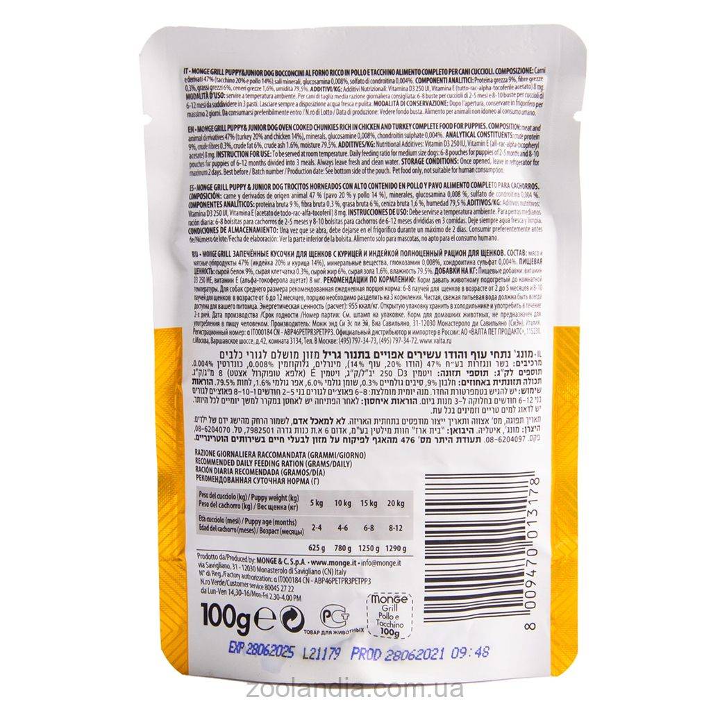 Вот несколько преимуществ, которые делают консервы Monge Grill Puppy Chicken And Turkey идеальным выбором для вашего щенка: