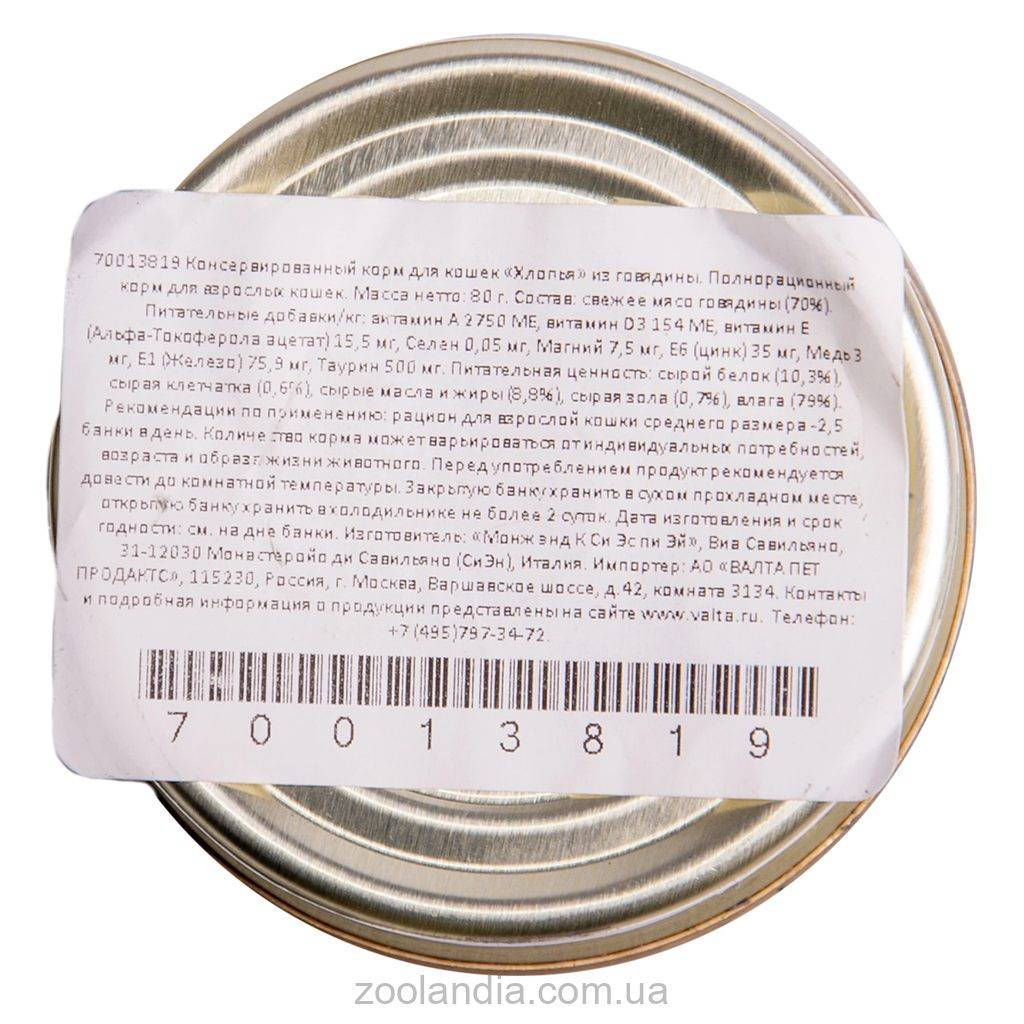 Корм произведен без использования глютена, растительных белков, злаков, субпродуктов, гидрогенизированных жиров, сахара, консервантов и красителей, что свидетельствует о высоком качестве продуктов.