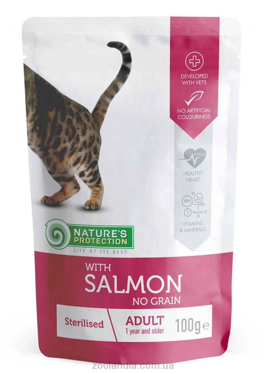 Nature's Protection Cat With Salmon Sterilized - это высококачественный консервированный комплексный корм с лососем - отличный способ побаловать стерилизованных или страдающих ожирением кошек.