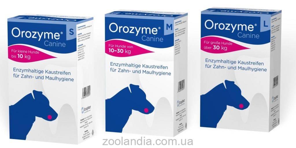 Ecuphar Orozyme – Коллагеновые полоски жевательные для собак содержат запатентованную формулу ферментов, улучшающую антибактериальное действие слюны собак. Добавлены вещества антисептики, задача которых - снижение количества бактерий, ответственных за неприятный запах и образование зубного налета и зубного камня. Полоски не распадаются во время жевания. Давать собаке их очень легко, потому что они удовлетворяют естественную потребность – жевать. Продукт не содержит сахара, искусственных красителей и вкусовых веществ. Это гипоаллергенное средство и характеризуется низким содержанием жира.