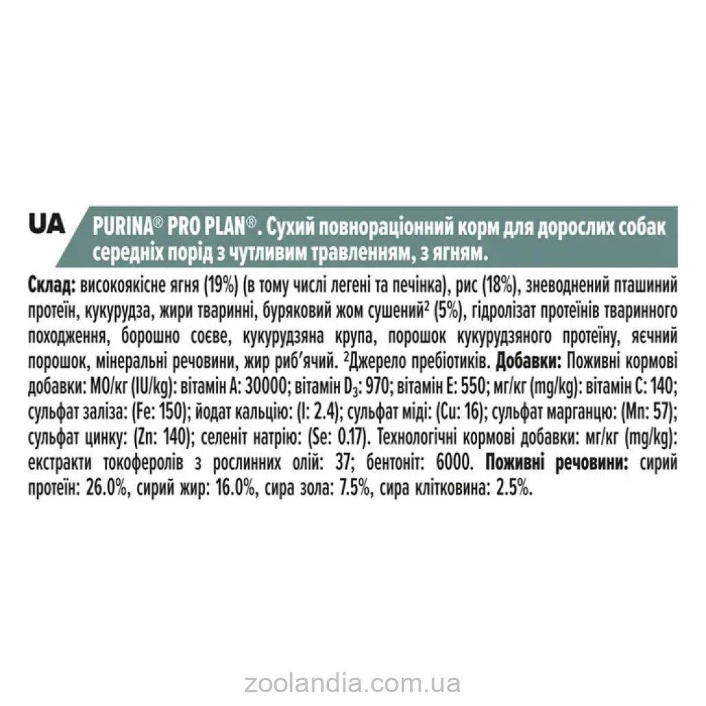 Высококачественный ягненок (19%) (в том числе легкие и печень), рис (18%), обезвоженный птичий протеин, кукуруза, жиры животные, свекольный жом сушеный* (5%), гидролизат протеинов животного происхождения, мука соевая, кукурузная порошок кукурузного протеина, яичный порошок, минеральные вещества, рыбный жир. *Источник пребиотиков.
