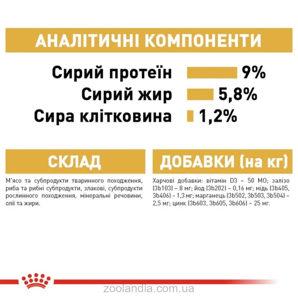Состав Мясо и субпродукты животного происхождения, рыба и рыбные субпродукты, злаковые, субпродукты растительного происхождения, минеральные вещества, растительные масла и жиры.