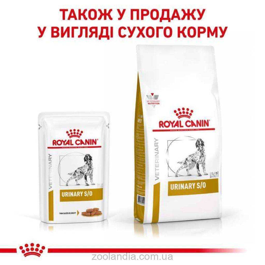 Консервированный корм Royal Canin Urinary S/O - это ветеринарная диета для собак при заболеваниях мочевыделительной системы. Корм изготовлен в виде мясных долек в ароматном соусе.