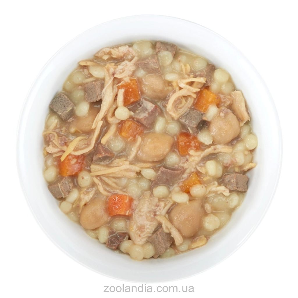 ИНГРЕДИЕНТЫ: ягненок 34% (в том числе, печень 14%, сердце 14%), куриный бульон 32%, курица 12%, кускус 10%, нут 4%, морковь 3%, минералы, рафинированное подсолнечное масло, крахмал тапиоки, порошок куркумы 0.1%, масло тунца.