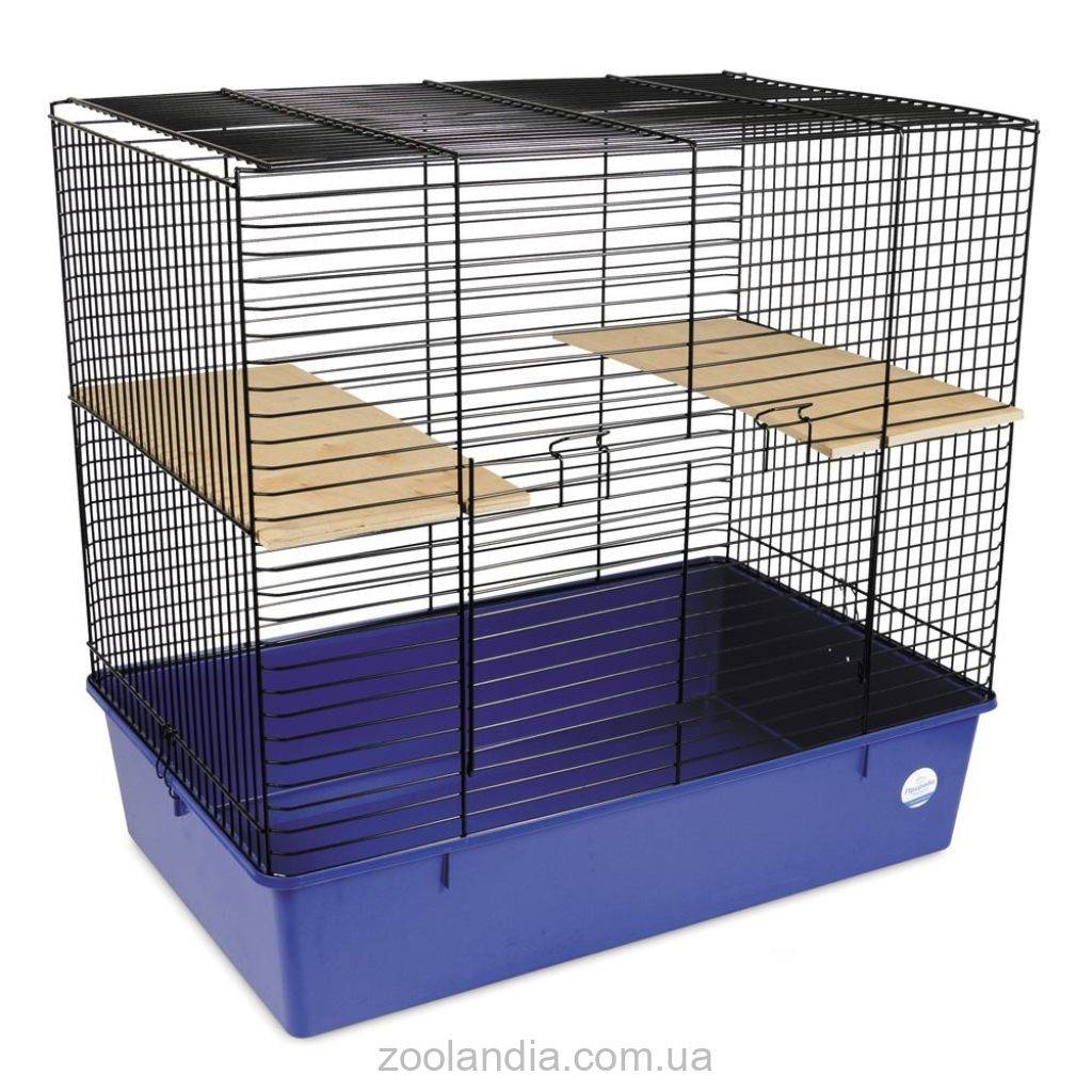 Решетка изготовлена из стальной проволоки, окрашенной качественной порошковой краской, безвредной для животных. Довольно глубокий поддон из первичного полипропилена также совершенно безопасен для питомца, не поглощает запахи, легко моется. Надежные защелки на боках клетки, с помощью которых она фиксируется на поддоне, и на дверце гарантируют, что шустрый зверек не сможет выбраться сам.