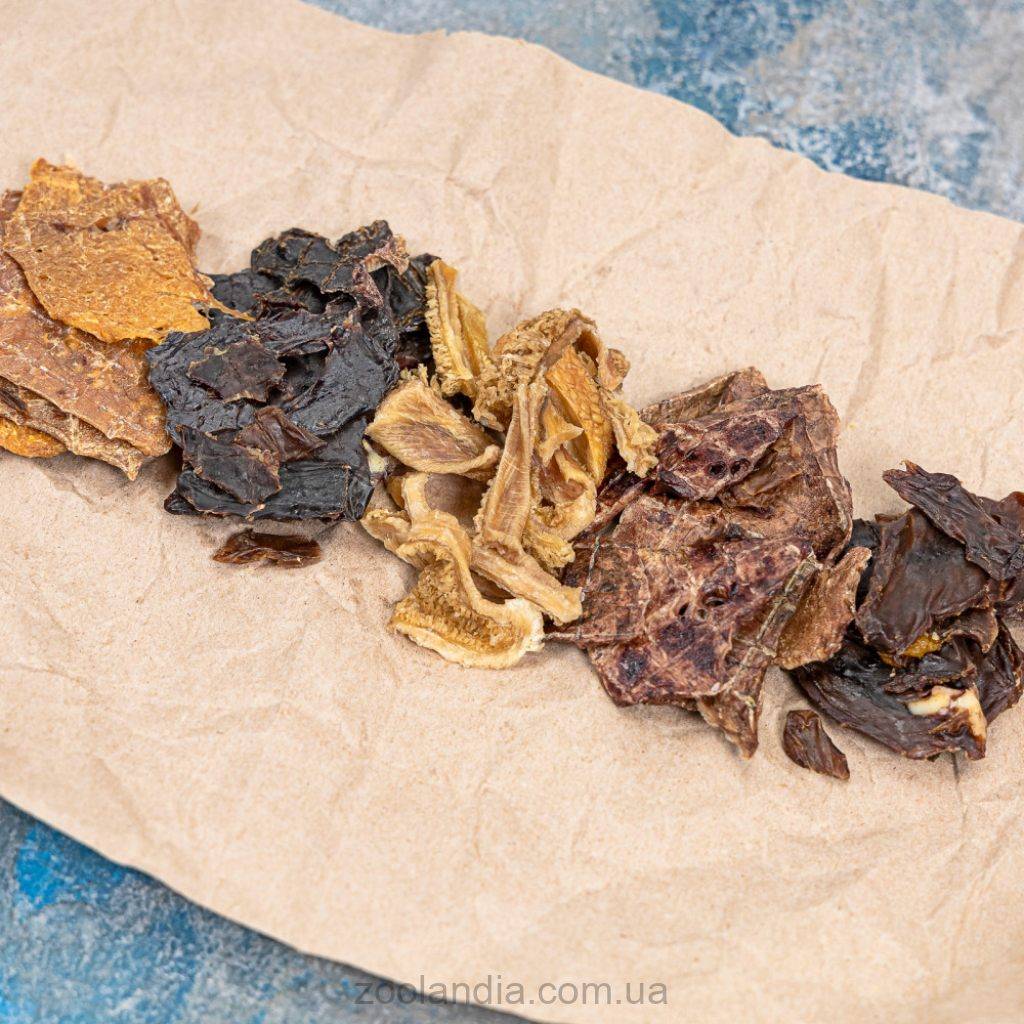 Микс – идеальный продукт для ознакомления. Видите интересные новинки и не знаете, что выбрать? Собака в восторге от сушеных субпродуктов, но вам неприятно их держать в руках или в своем доме? Форма чипсов – именно то что надо. Не липкие, имеют приятный вид, привлекательный для собаки вкус и аромат, надежно упакованы в пачку с зип-локом. А с этим набором вы можете ознакомиться с топовыми вкусами и выбрать самое интересное для вашей собачки. В состав входят рубец говяжий, легкие говяжьи, печень говяжья, почки говяжьи, вымя говяжье.