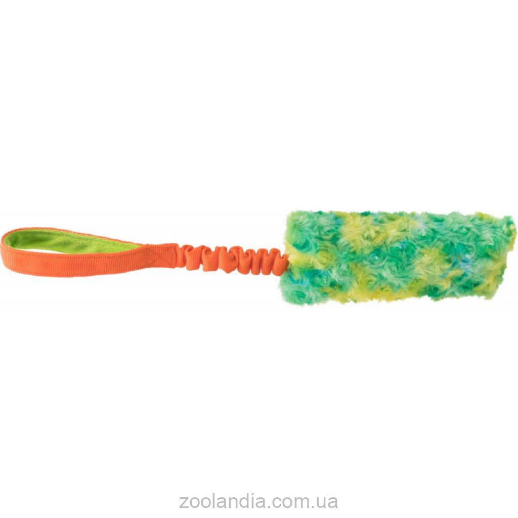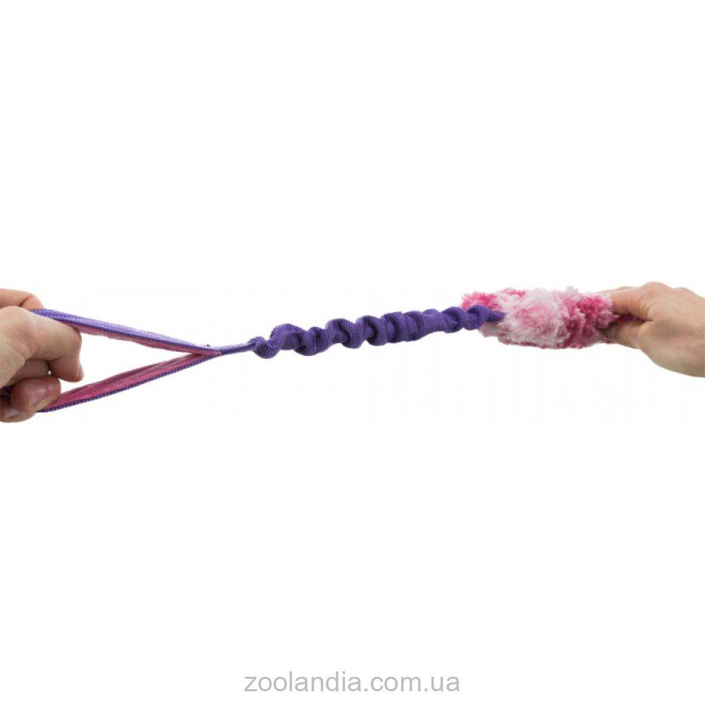Это игрушка для активных контактных игр с собакой. Ее можно перетягивать, можно использовать для апорта. Плотная ручка с амортизационным эффектом удобна для владельца и минимизирует рыски травмы руки. А деликатная структура игрушки не травмирует зубы, поэтому ее можно использовать даже для игр с щенками.