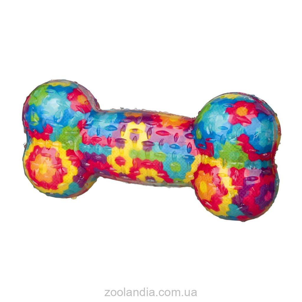 Яркая косточка из термопластичной резины поднимет настроение питомцу! Пищалка побудит его начать активную игру. Косточка пригодится для апортировки или самостоятельного досуга собаки. Благодаря пестрой расцветке игрушку хорошо видно в траве или под мебелью. Зернистая текстура поверхности делает косточку удобной для совместных игр с собакой, так как она не выскальзывает из рук.