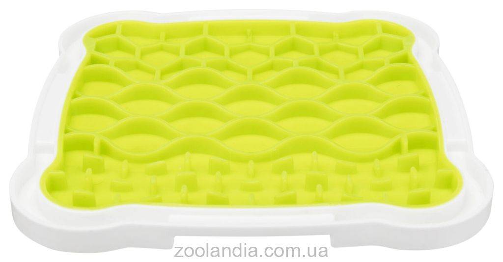 Медленное поедание корма является отличным способом предотвратить у вашего любимца переедание и вызванные им проблемы – чрезмерное газообразование, ожирение. А облизывание расслабляет собаку и обеспечивает периоды отдыха. Оптимальным помощником для этой цели является миска Trixie Lick'n'Snack. Из-за небольших отверстий или бороздок ваш питомец берет за раз лишь небольшое количество лакомства или корма, и этот процесс надолго занимает его внимание. Вы можете нанести на тарелку разные пасты или даже влажный корм, который ваша собака потом с удовольствием будет вылизывать.На улице жарко, и вы хотите подарить своей собаке немного свежести? Тогда наполните миску Trixie Lick'n'Snack йогуртом или пастой и, прежде чем предложить ее собаке, поместите мику в морозильную камеру,За миской легко ухаживать и ее можно мыть в посудомоечной машине. Соответствует требованиям защиты животных в соответствии с разделом 18 (AT).Материал: TPR/пластикРазмер: 20*20 см