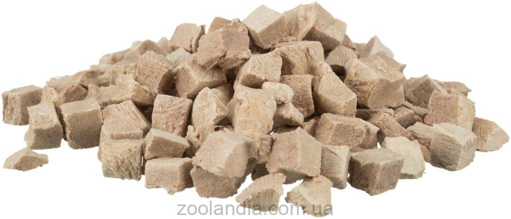 Лакомство для собак Trixie Премио "Freeze Dried" – это лучшее проявление любви и заботы к своему питомцу. Ведь такие вкусности чрезвычайно аппетитны, а их ингредиенты полезны для здоровья вашего любимца. Эти хрустящие кубики на 99 % состоят из утиной грудинки. Благодаря особому процессу приготовления удалось сохранить все ее питательные ценности и вкусовые свойства."Freeze Dried" можно использовать, если хотите похвалить или поощрить своего любимого хвостика.Лакомство Trixie – вкусная составляющая вашей любви!Состав: утиная грудка сухой заморозки (99 %), крахмал из тапиоки