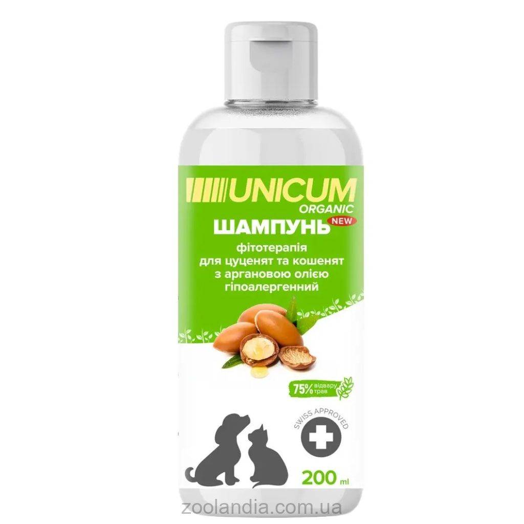 Шампунь для щенков и котят с аргановым маслом UNICUM ORGANIC - это специально разработанное средство для бережного ухода за шерстью и кожей молодых животных. Благодаря натуральным ингредиентам и аргановому маслу, этот шампунь обеспечивает нежный, но эффективный уход, делая шерсть вашего любимца здоровой, мягкой и блестящей.
