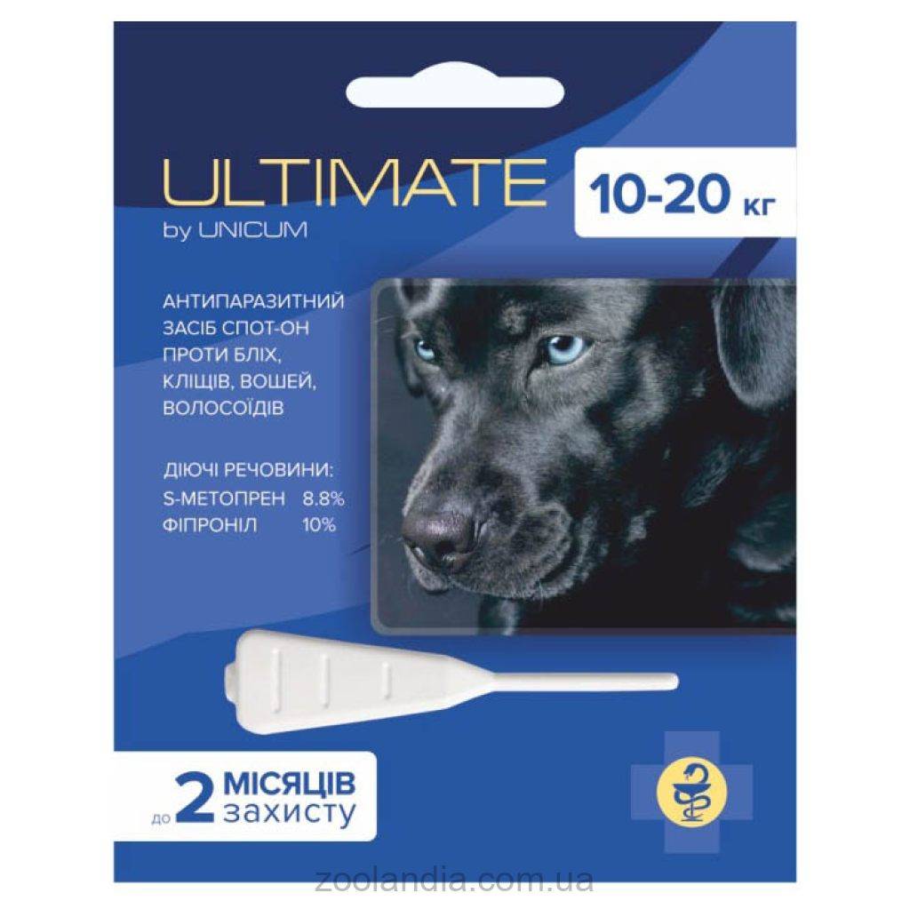 Unicum (Уникум) Ultimate - Капли на холку от блох, клещей, вшей и власоедов для собак 10-20 кг (1,6 мл)