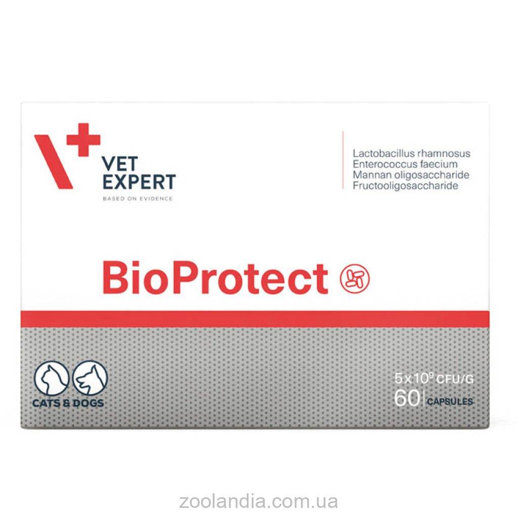 Vet Expert BioProect (Вет Эксперт БиоПротект) - пищевая добавка на основе пробиотиков и пребиотиков для кошек и собак с нарушением баланса микрофлоры в желудочно-кишечном тракте. Помогает устранить последствия, вызванные применением антибиотиков, дегельминтизацией. Также назначается домашним животным в период роста и для профилактики запоров.