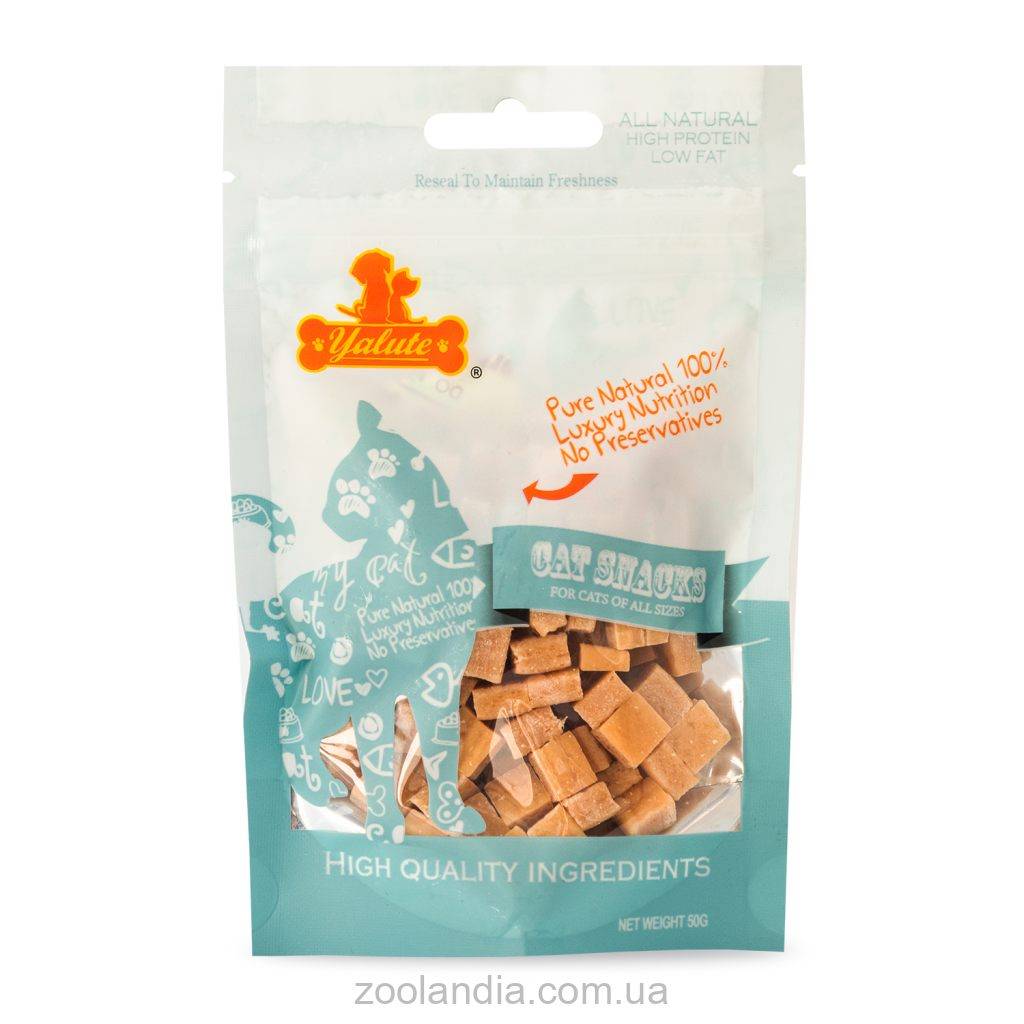 Снеки Yalute (Ялут) – новый стандарт лакомства для кошек. Аппетитные кубики изготовляют из отборочного мяса курицы и других природных составляющих. Поэтому эти закуски обладают отличным вкусом и поддерживают отличную физическую форму любимцев.