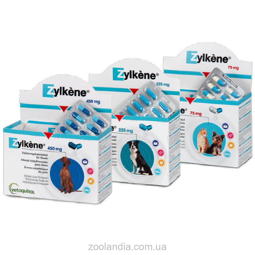 Дозировка и способ применения:Можно применять как с едой, питьем так и самостоятельно. Перорально в дозах:Zylkene 75 мгживотным с массой тела менее 5 кг - 1 капсула в деньживотным с массой тела от 5 до 10 кг - 2 капсулы в день