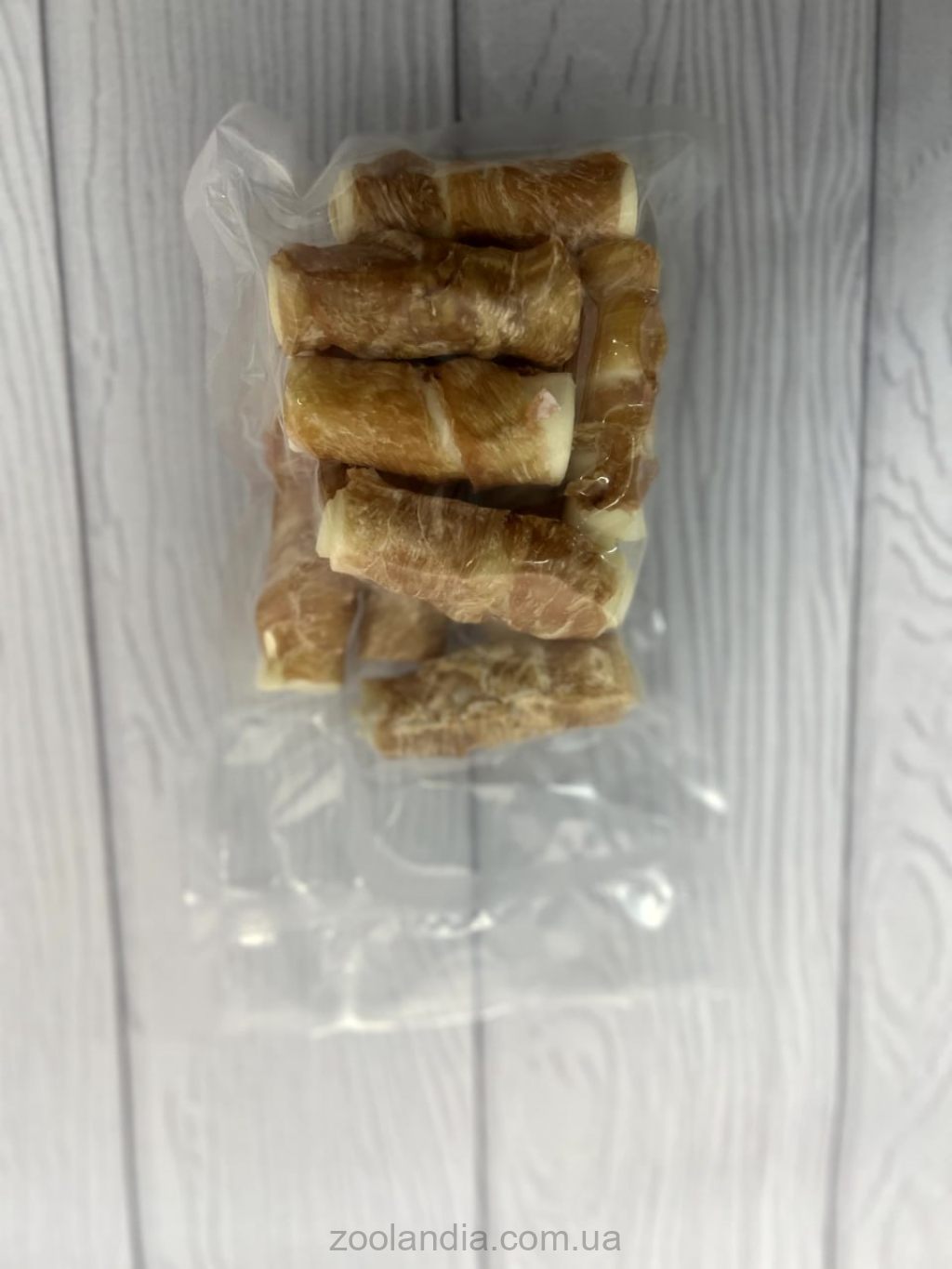 Склад: натуральна сиром'ятна шкіра, сушене м'ясо курки.