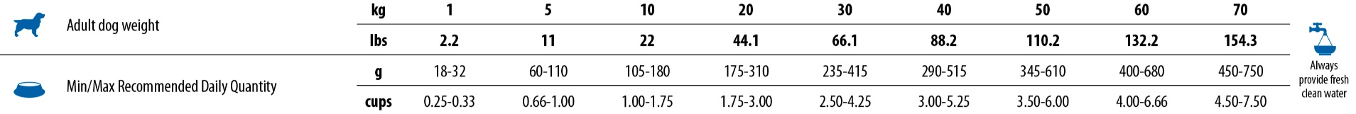 Оленина (20%), дегідратована оленина (20%), гороховий крохмаль, риб'ячий жир (з оселедця), екстракт насіння кіноа (8%), насіння льону, кокосова стружка (2,5%), куркума (2,5%), інулін, фруктоолігосахариди, дріждж маннан-олігосахаридів), карбонат кальцію, дикальційфосфат, лушпиння та насіння подорожника, хлорид калію, хлорид натрію, сухі пивні дріжджі, екстракт алое віра, глюкозамін, хондроїтин сульфат. Джерела білка: оленина, дегідратована оленина.
