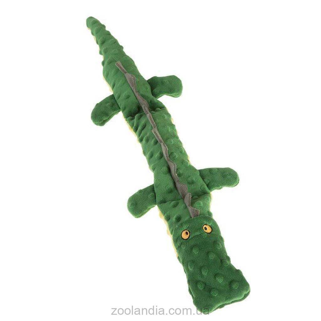 Цей аксесуар виготовлений у вигляді крокодильчика, має насичений зелений колір. Він обов'язково приверне увагу вашої собаки, порадує її і подарує гарний настрій. Іграшка довговічна, виготовлена з міцного матеріалу, завдяки чому, вихованець може з нею грати як в будинку, так і на природі. В середині немає ніякої додаткової набивання.