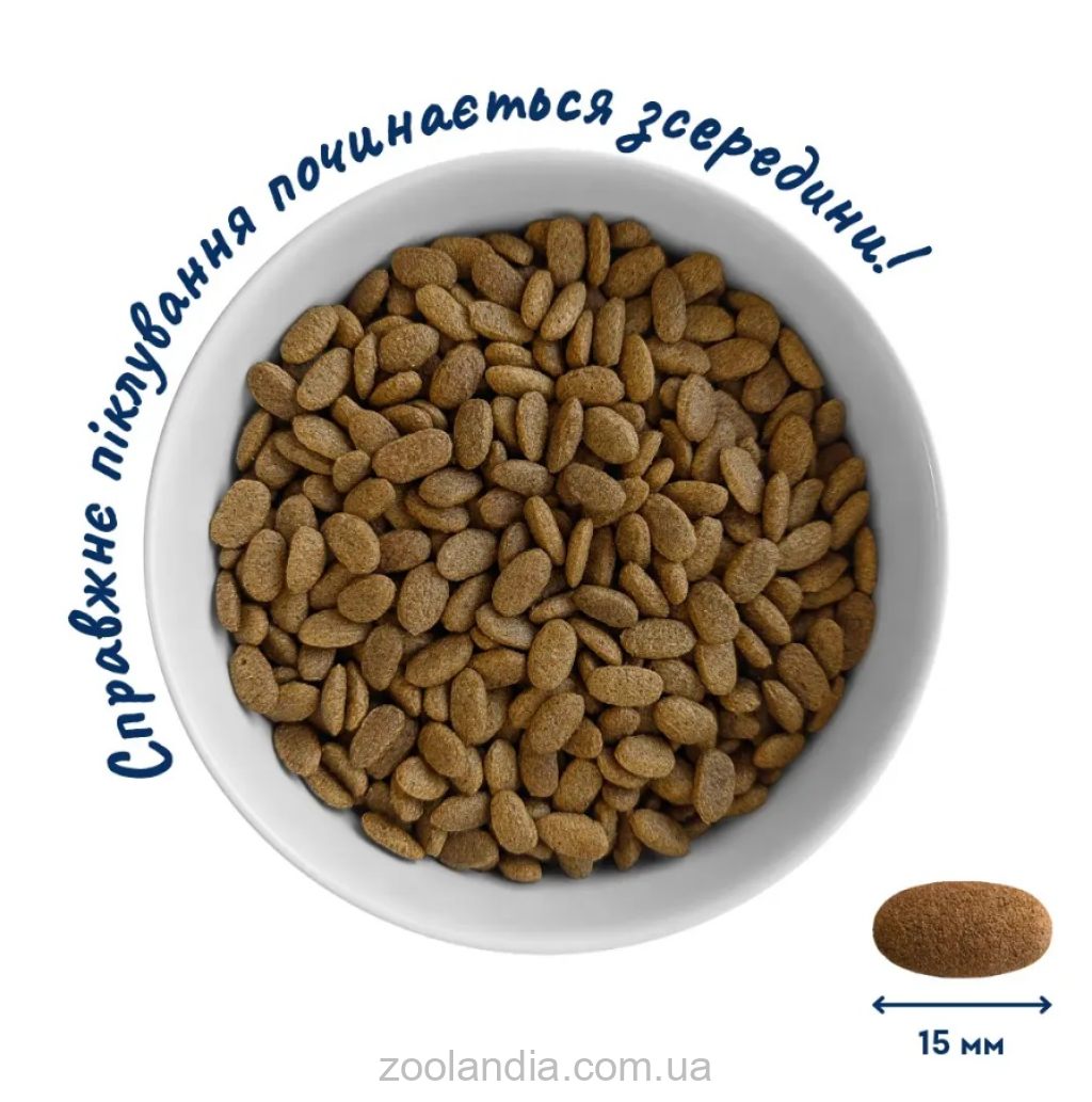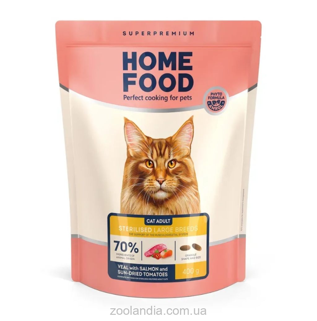 Високопротеїновий корм на основі двох видів протеїнів – м’яса телятини та лосося. Ідеально підходить для котів великих порід завдяки потужному вмісту хондропротекторів.