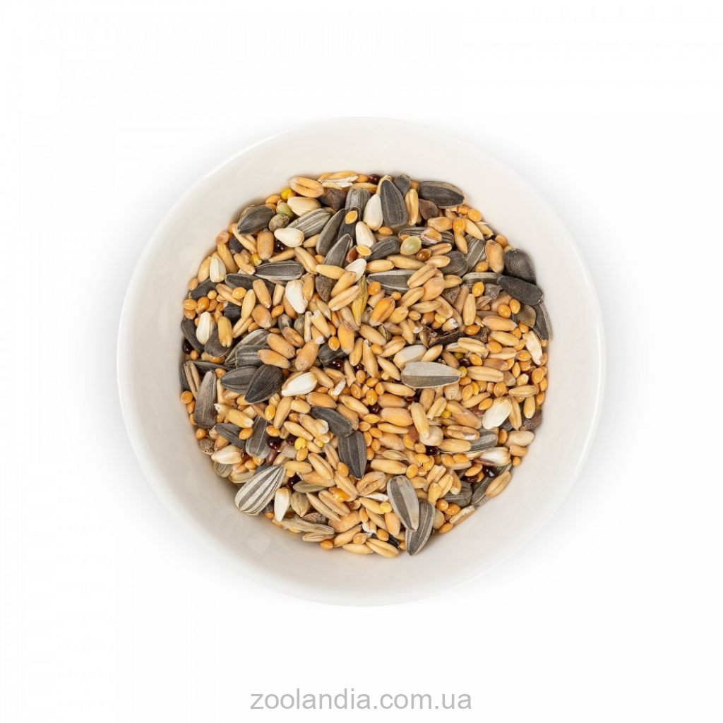 Склад: насіння льону, насіння конопель, пшениця, насіння соняшнику, насіння соняшнику сірого, арахіс, яблука сушені гранульовані, сафлор, кероб, канаркове насіння, просо, сорго, овес голозерний, гречка, просо чорне.