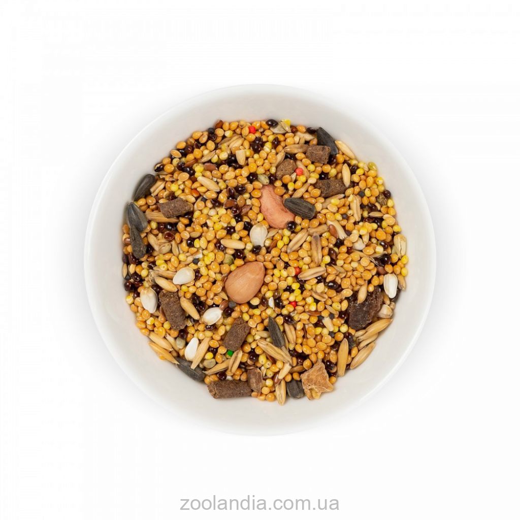 Склад: канаркове насіння, насіння конопель, насіння льону, арахіс, насіння соняшнику, ріпак, яблука сушені гранульовані, просо чорне, овес голозерний, сафлор, просо, пшоно, сорго.