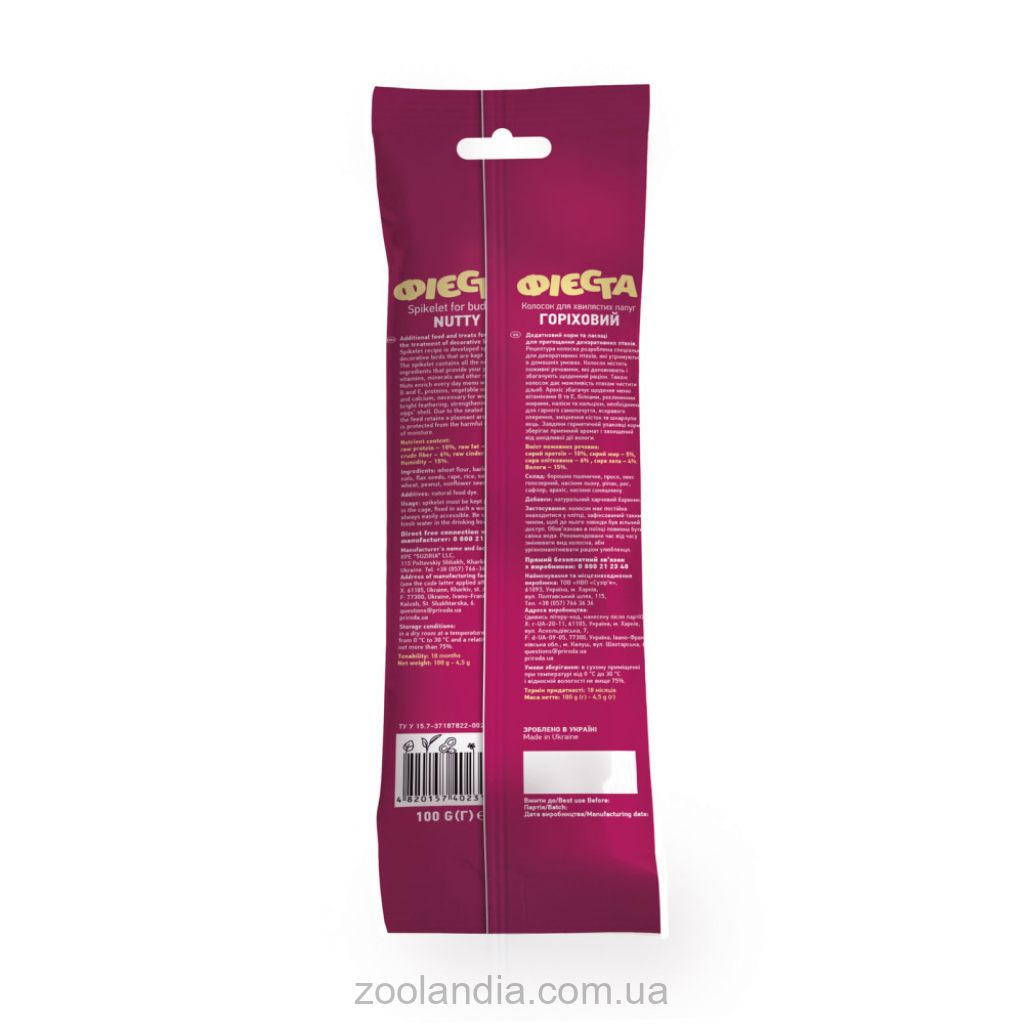 Склад: просо, овес голозерний, насіння льону, ріпак, рис, сафлор, арахіс, насіння соняшнику.