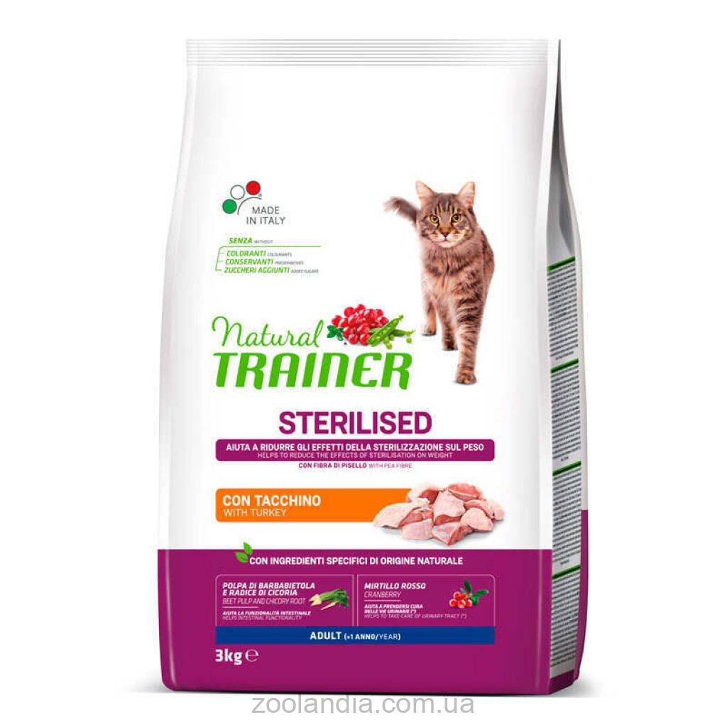 Індичатина 16%, дегідровані білки курки та індички, кукурудза, кукурудзяний білок, рис, дегідрований горох 5%, дегідровані протеїни свинини, дегідровані протеїни яловичини, клітковина гороху* 2,1%, жом буряка* 2%, жир тваринного походження, гідролізований тваринний протеїн (птиця, свинина, риба), насіння льону*, мінерали, гороховий крохмаль, риб’ячий жир, сухий екстракт цикорію (джерело інуліну)* 0,8%, сухий екстракт журавлини 0,02% * Специфічні інгредієнти натурального походження.
