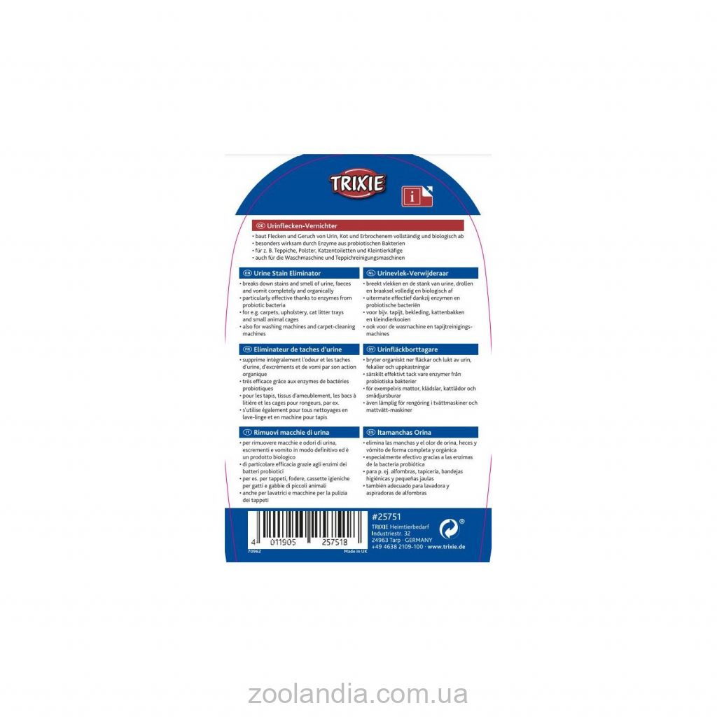 TRIXIE Urine Stain Eliminator є високоефективним у видаленні цих органічних плям. Спеціальний спосіб дії робить це можливим. Пробіотичні бактерії, які він містить, починають діяти після контакту з плямою, виробляючи ферменти, які здатні розщеплювати та повністю видаляти органічні білки.